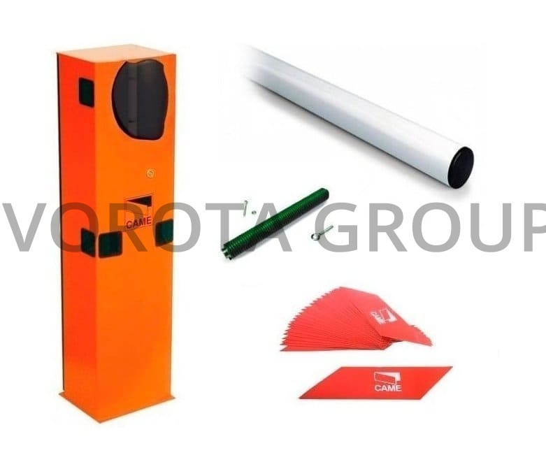 G3750_DX - Тумба шлагбаума из оцинкованной и окрашенной стали для правостороннего монтажа, класс защиты IP54, G0402 - Стрела алюминиевая диаметром 60 и длиной 4200 мм, G0461 - Наклейки светоотражающие красного цвета, 24 шт, G04060 - Пружина балансировочна